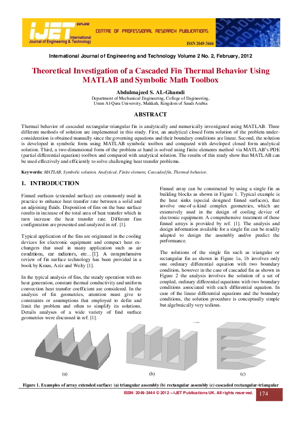 Pdf Theoretical Investigation Of A Cascaded Fin Thermal Behavior Using Matlab And Symbolic Math Toolbox Abdulmajeed Al Ghamdi Academia Edu