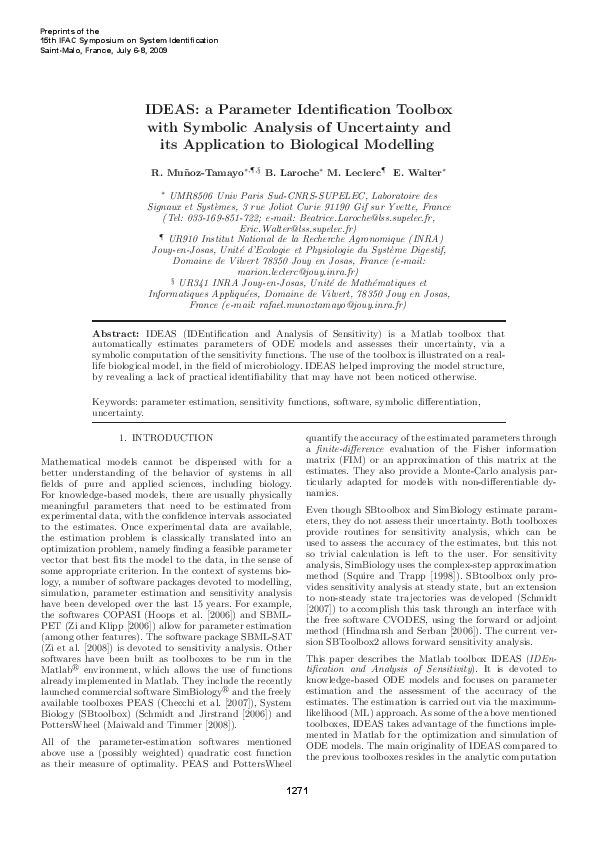 Pdf Ideas A Parameter Identification Toolbox With Symbolic Analysis Of Uncertainty And Its Application To Biological Modelling Rafael Munoz Tamayo Academia Edu